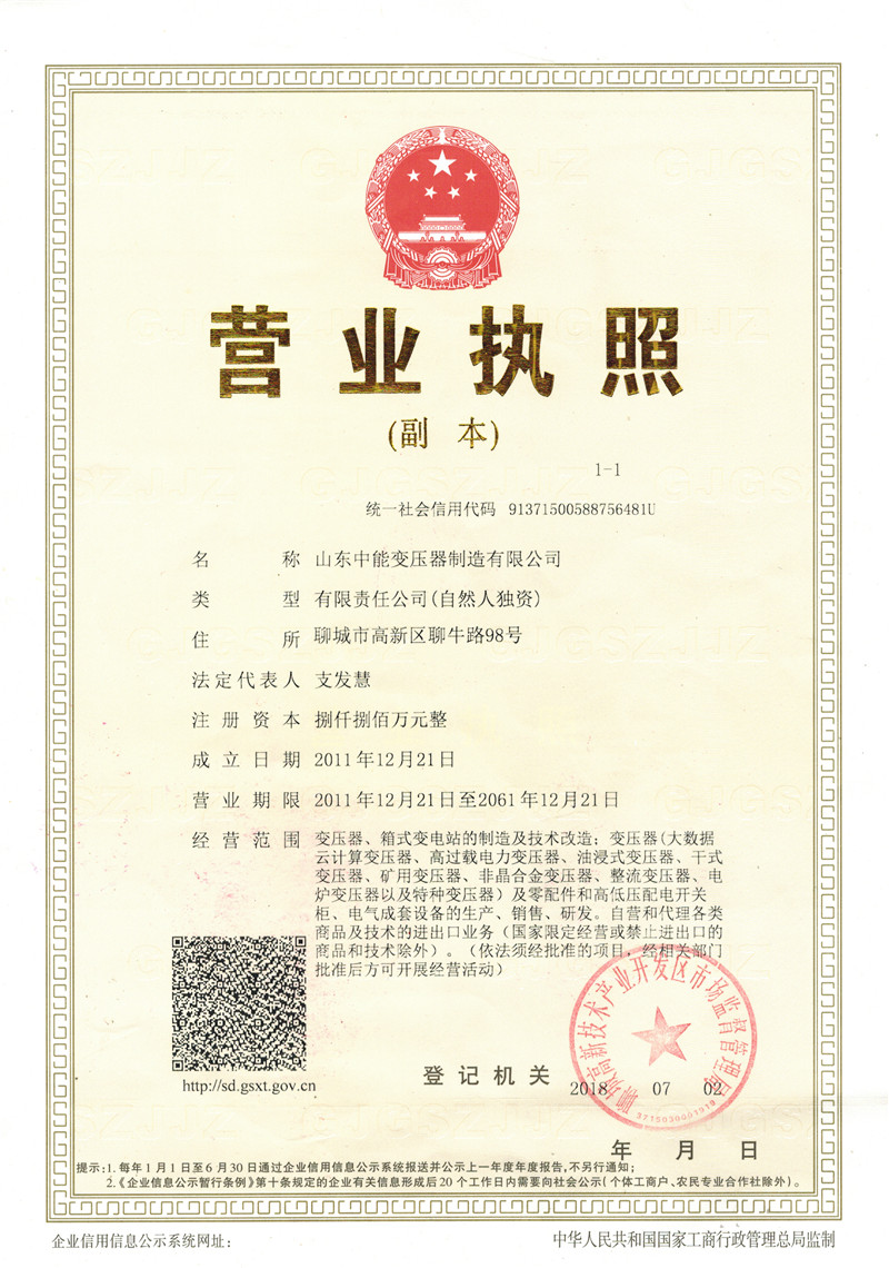 荣誉资质_茂名中能变压器厂家